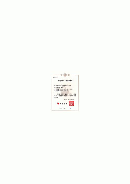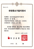 유망중소기업지정서