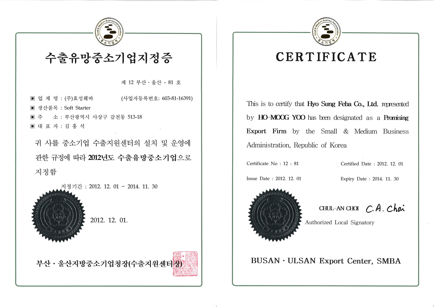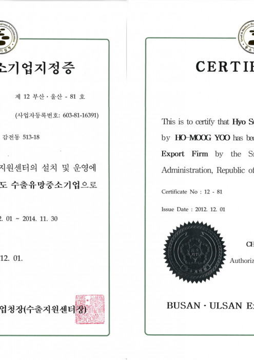 수출유망중소기업지정증