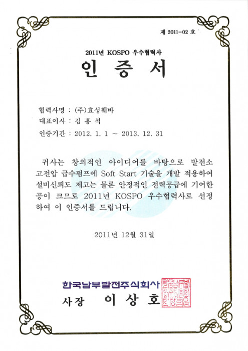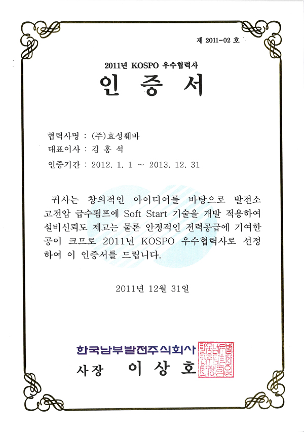KOSPO 우수협력사 인증