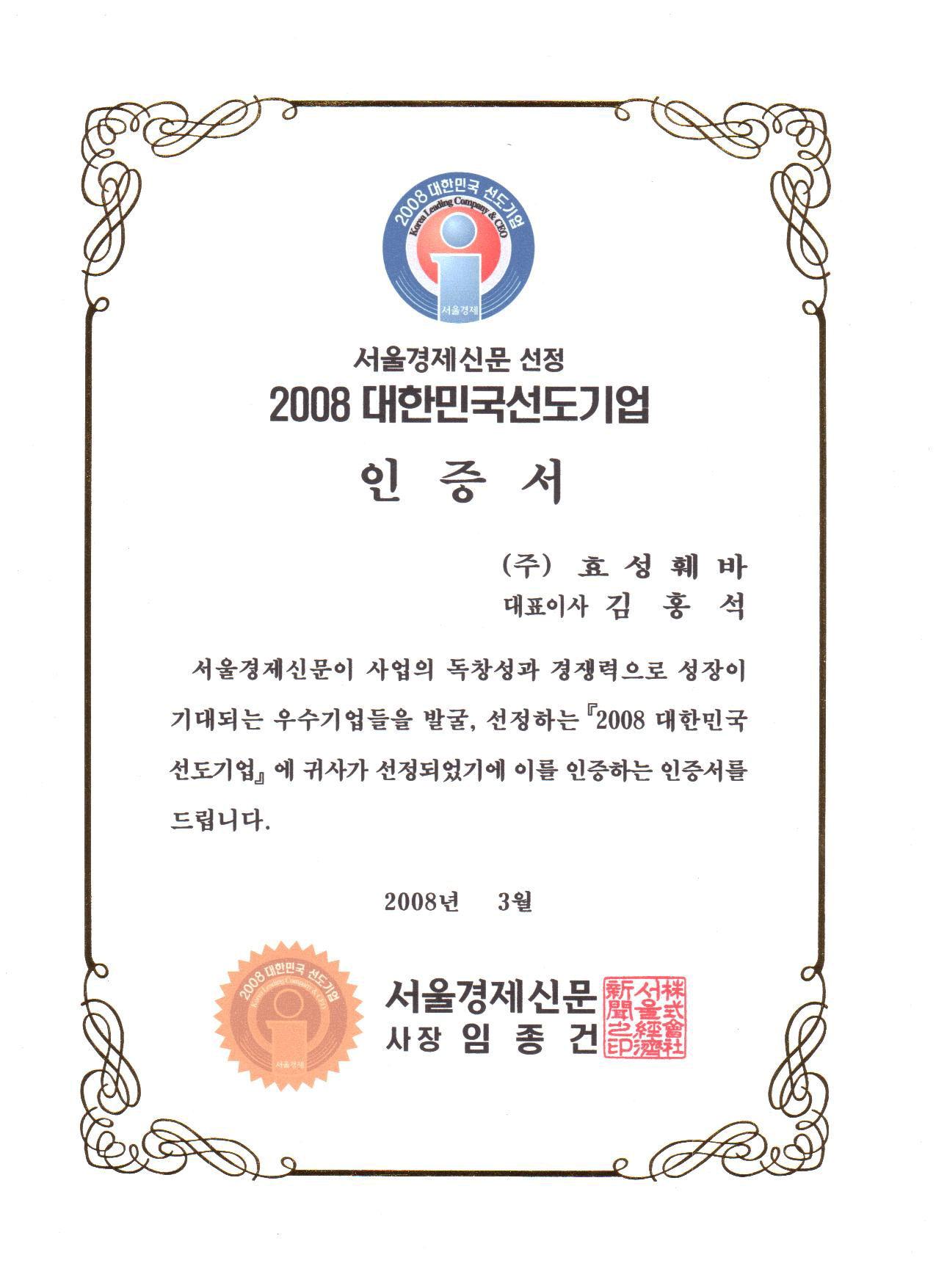 2008 대한민국선도기업 선정
