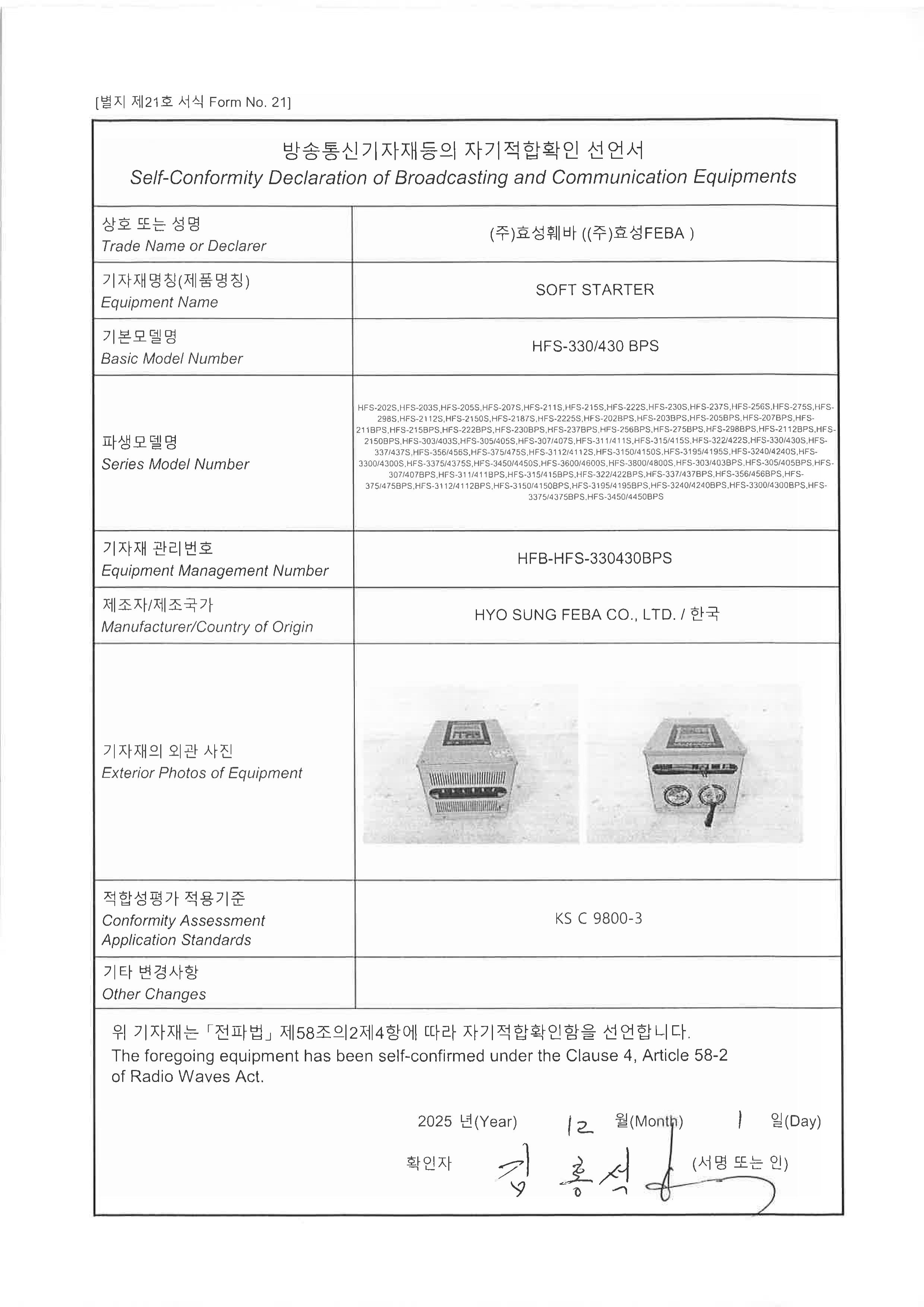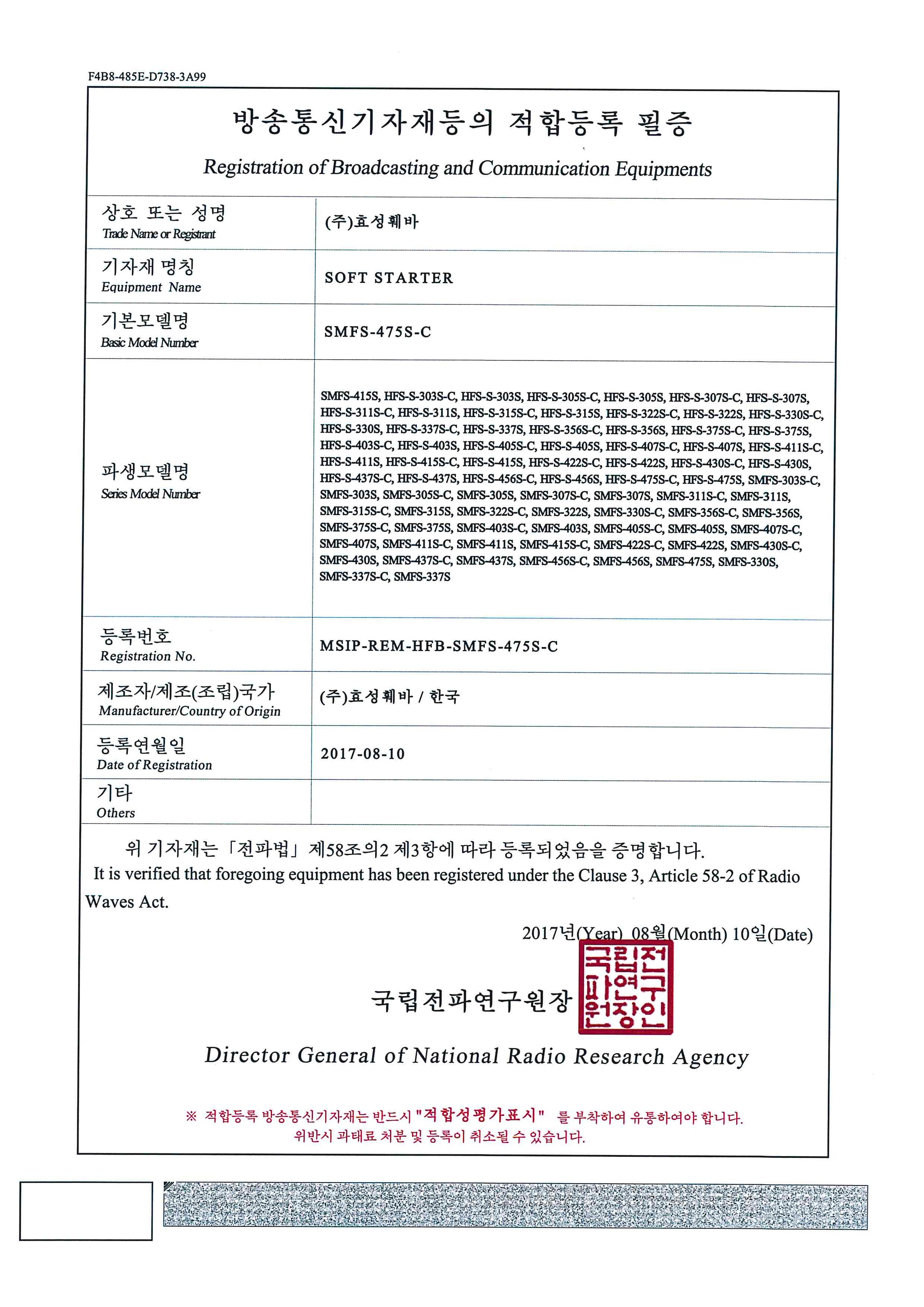 HFS-S 모델 KC인증