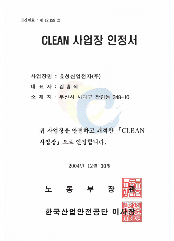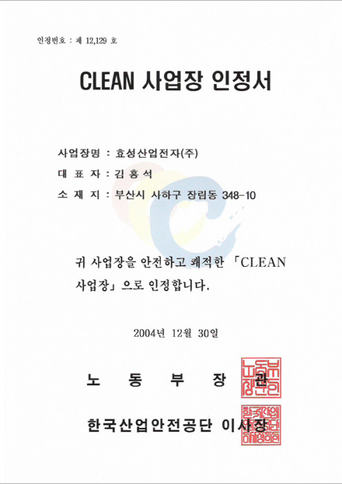 CLEAN 사업장 인정서