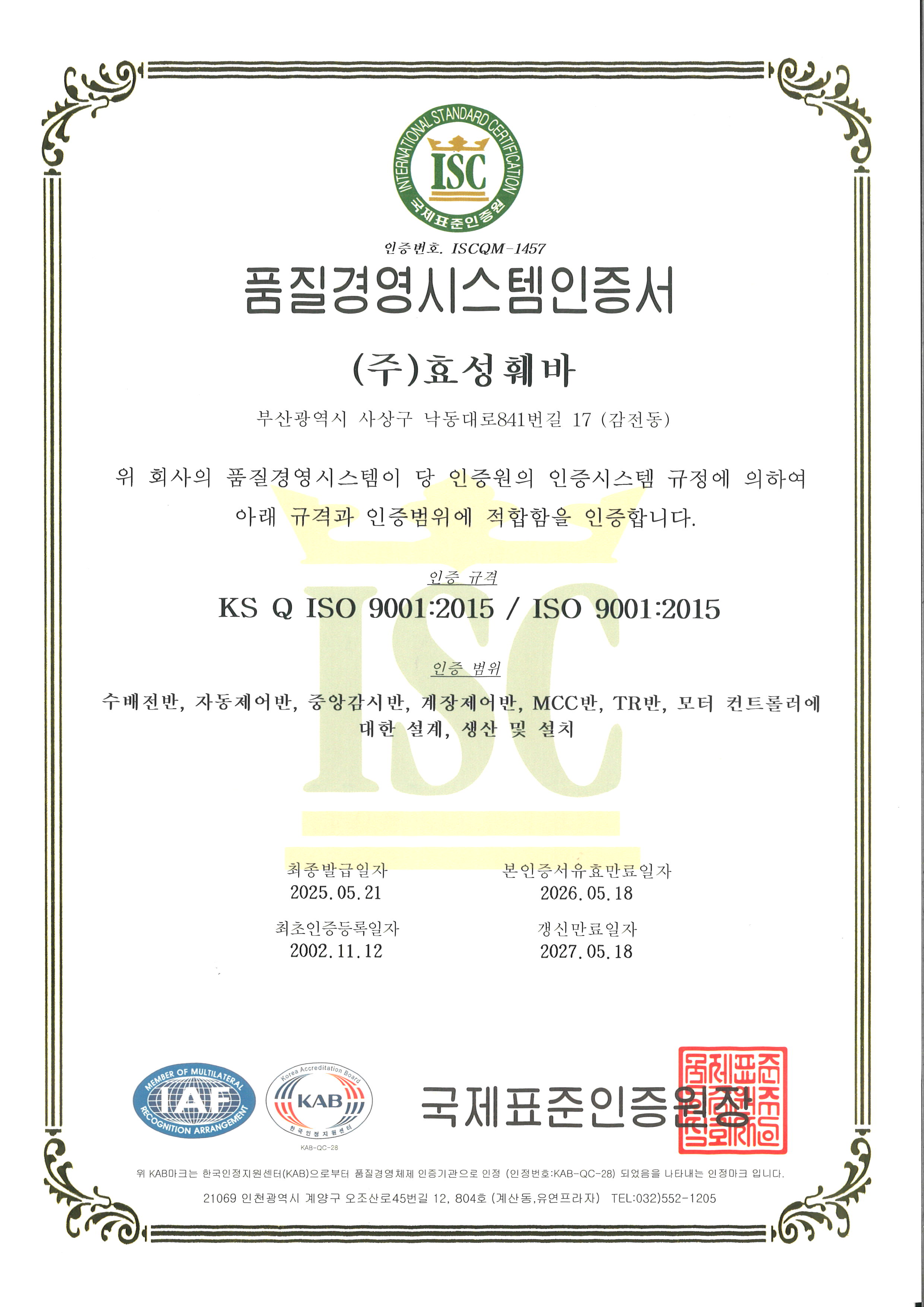 ISO9001 국문인증서