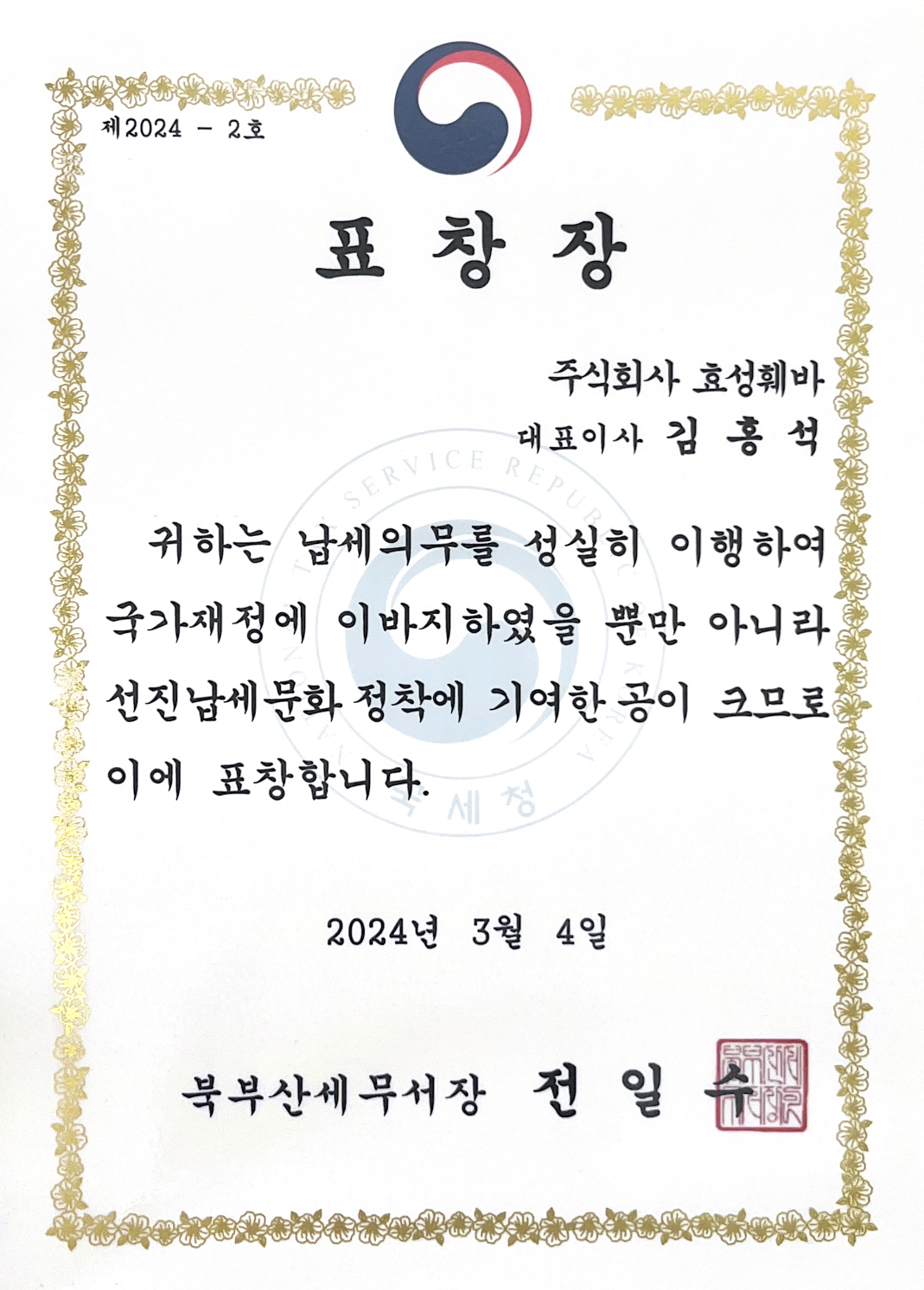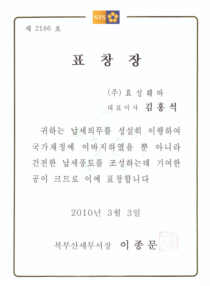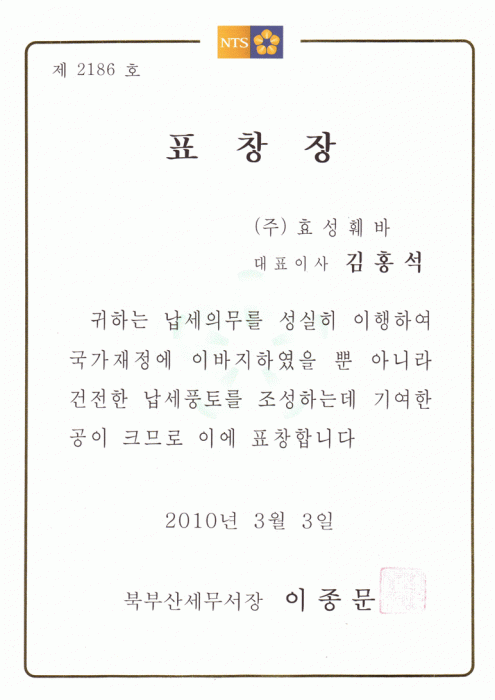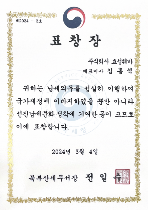 성실 납세 표창장 수여