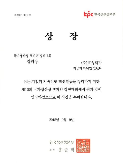 국가생산성챔피언경진대회 장려상