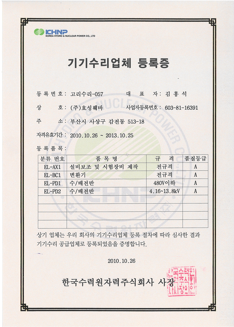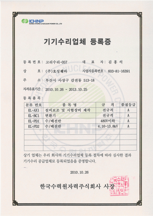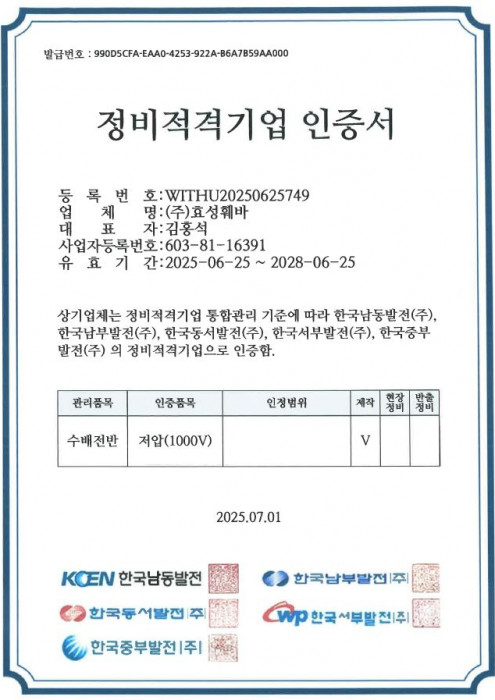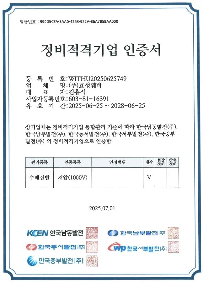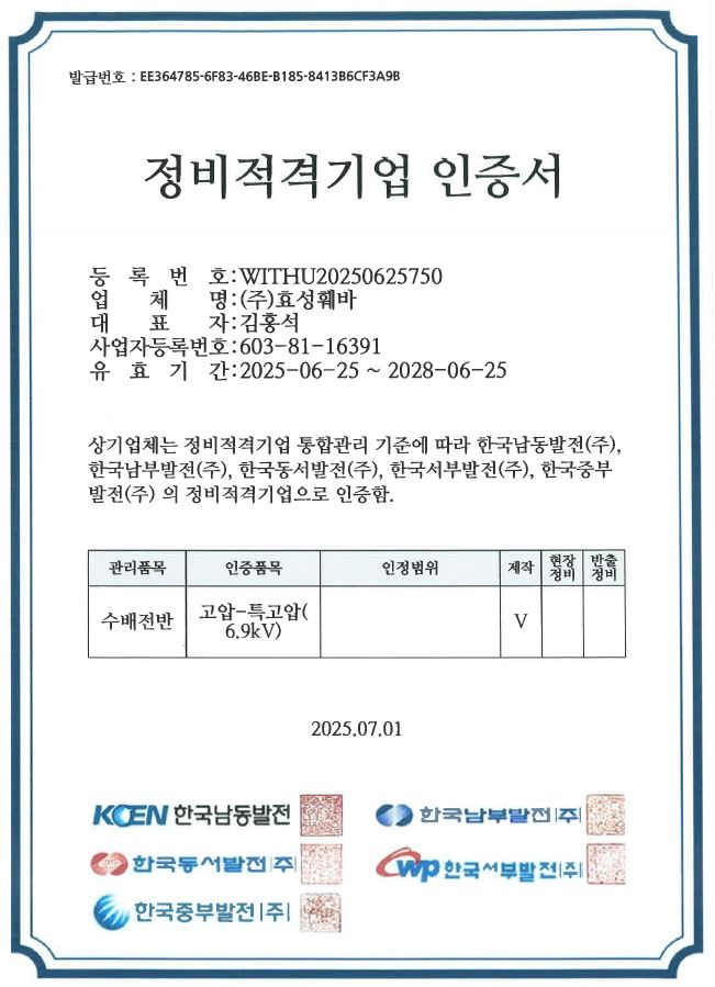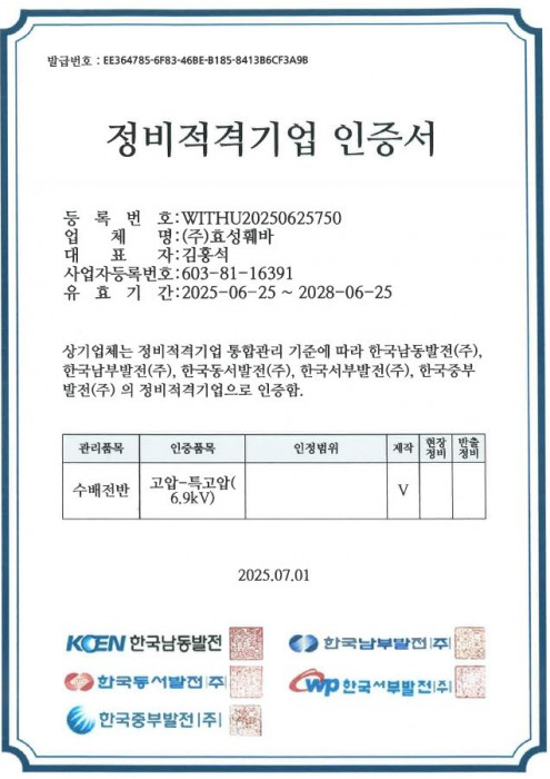 정비적격기업 인증서 (고압-특고압)