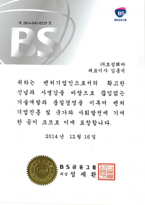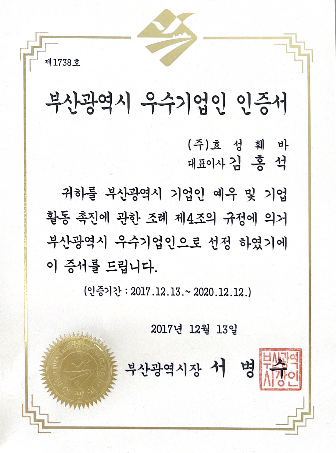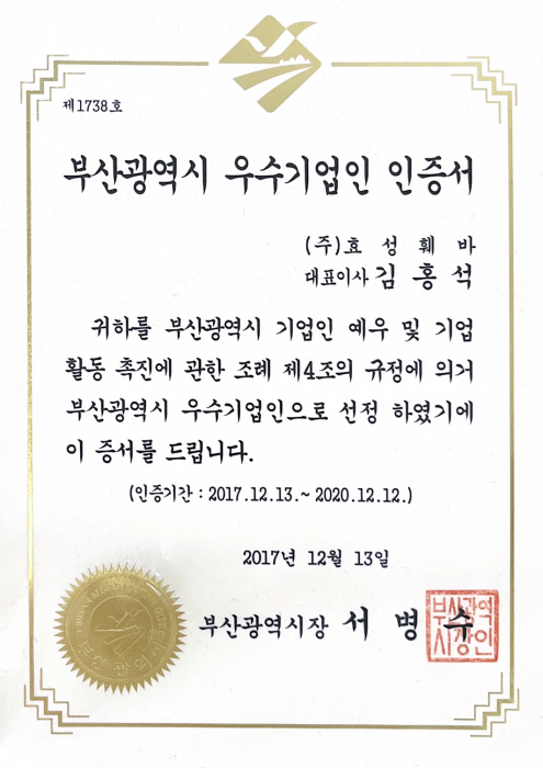 부산광역시 우수기업인 인증