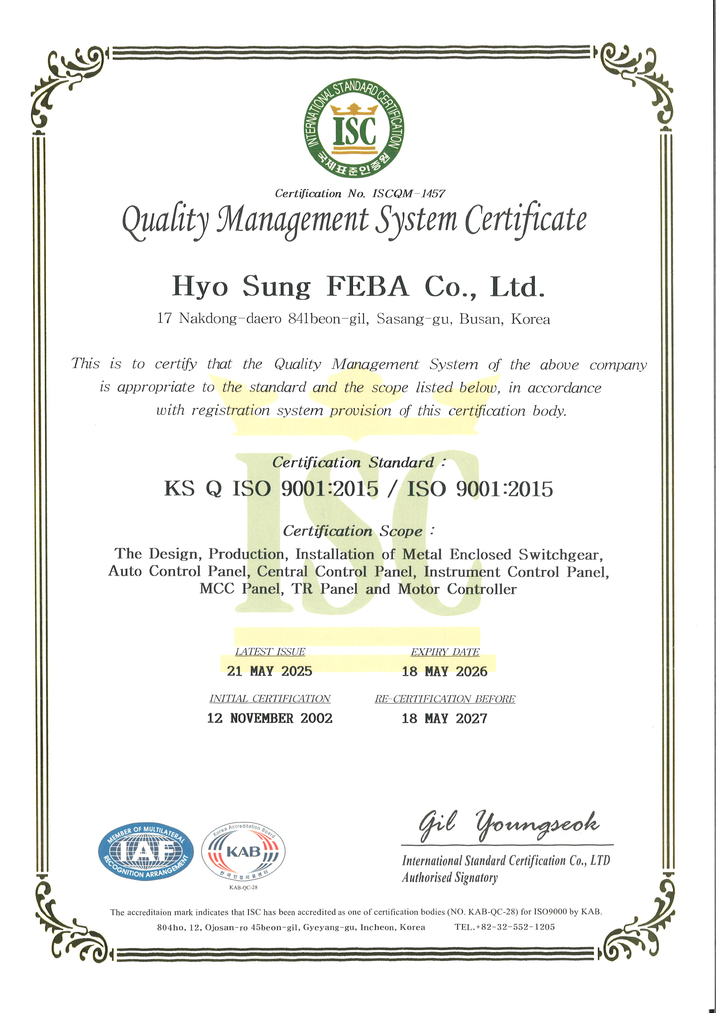 ISO9001 영문인증서