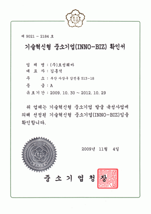 INNO-BIZ 기업 확인서